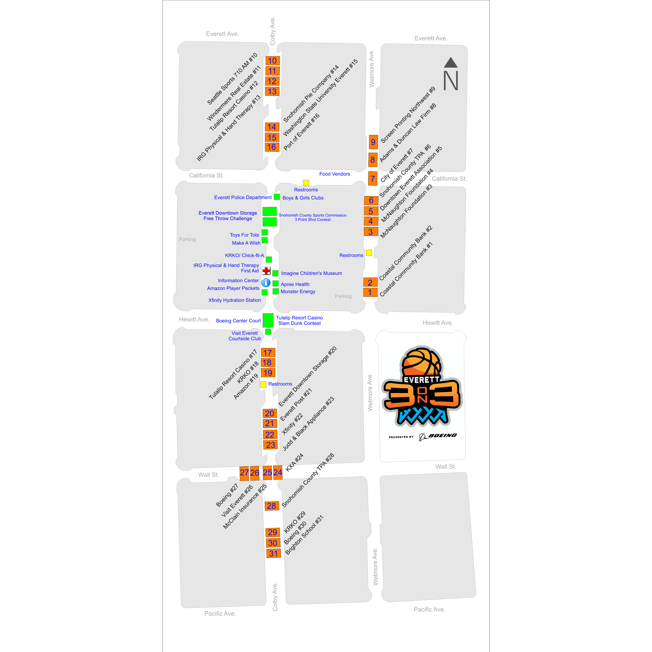 Everett 3on3 will take place on the streets of beautiful downtown Everett. Boeing Center Court will be at the intersection of Colby Ave. and Hewitt Ave. Use address 2825 Colby Avenue, Everett, WA 98201 for navigation purposes.